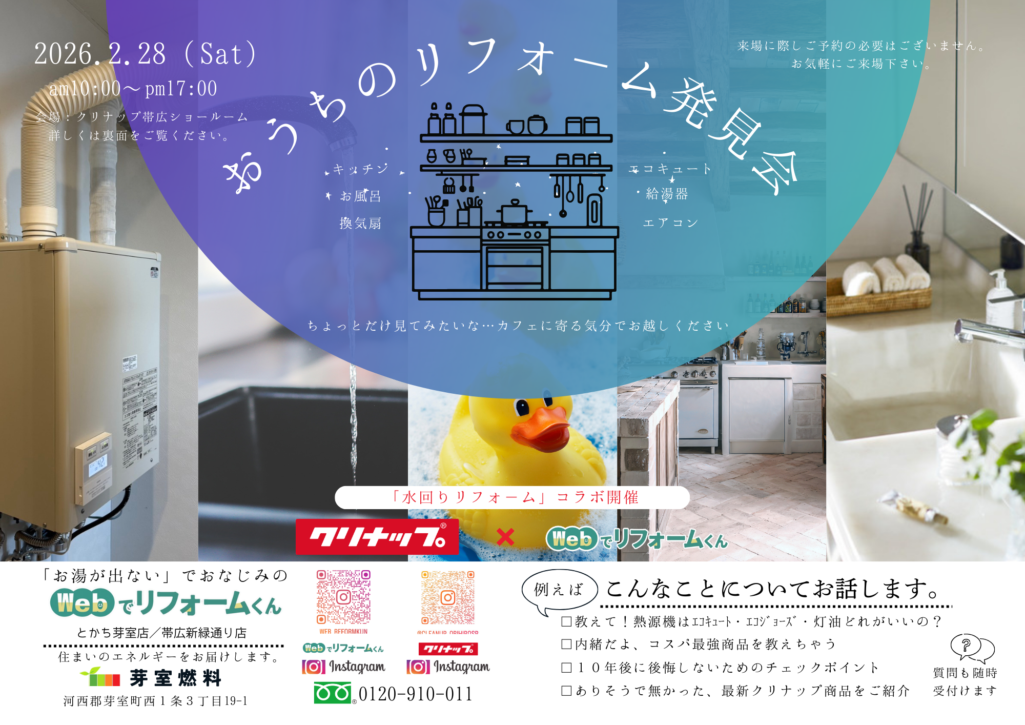 2月28日はぜひクリナップ帯広ショールームまでお越しくださいませ。