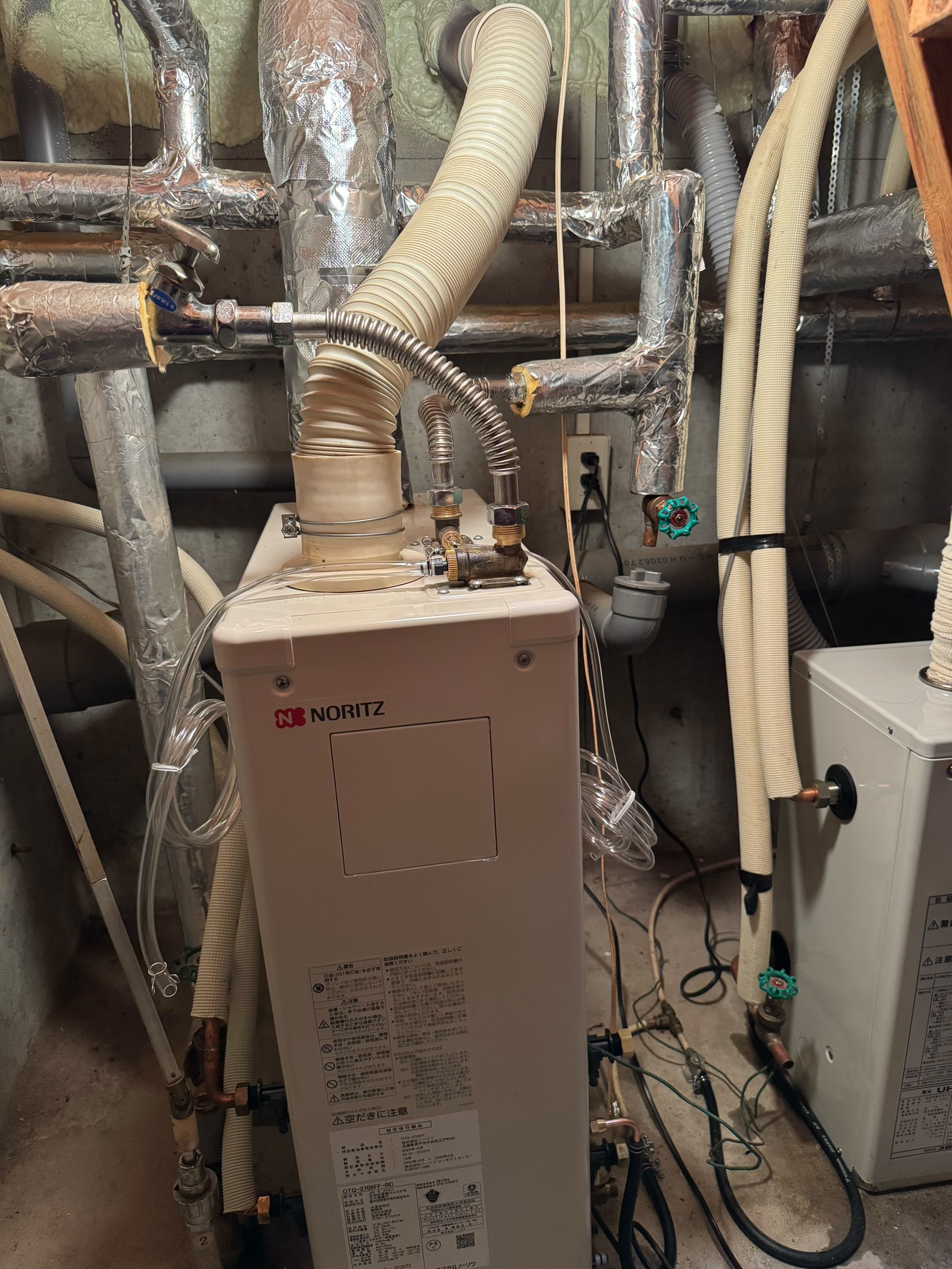 3人体制で床下設置のノーリツ製据置型直圧給湯器を同メーカー後継機にお取替えさせて頂きました。