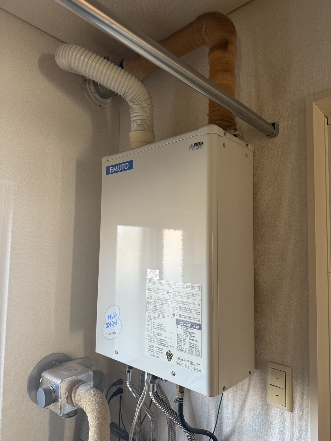 大変ご好評いただいております、長府製作所の最新給湯器「ウルトラファインバブル搭載給湯器」にお取替えさせていただきました。