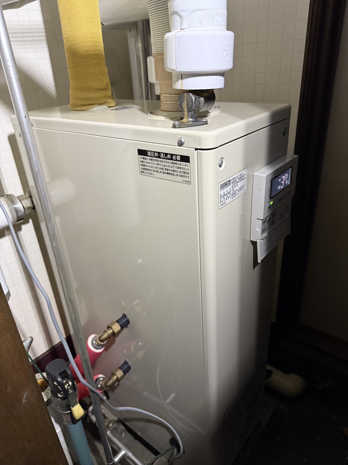 長府製据置減圧式給湯器から同メーカー後継機に交換施工させていただきました。