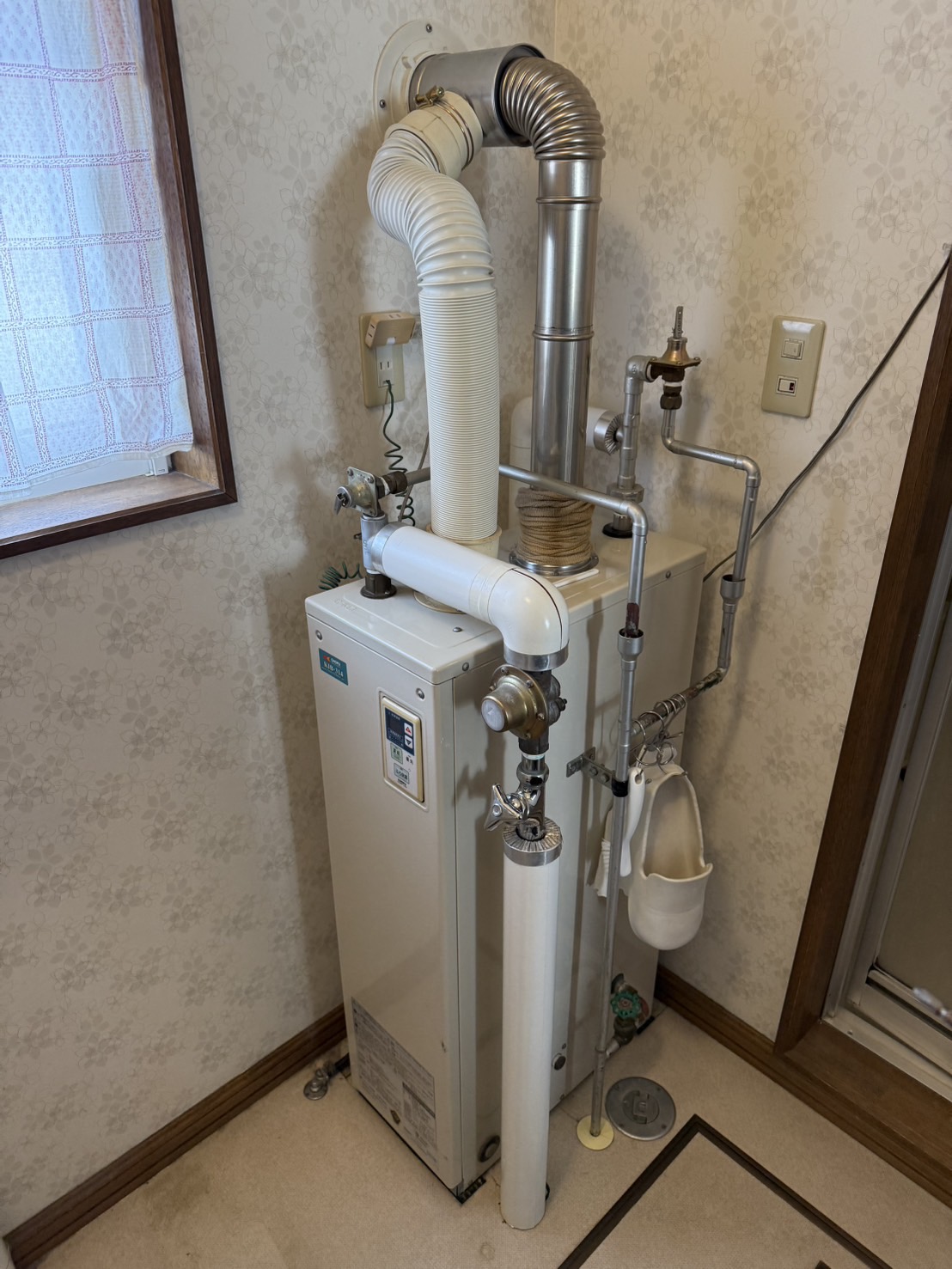 長府製据置型給湯器から同メーカー据置型給湯器にお取替えさせていただきました。