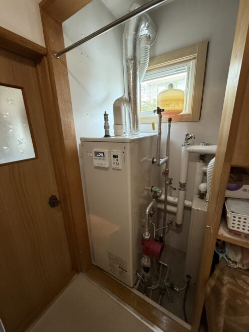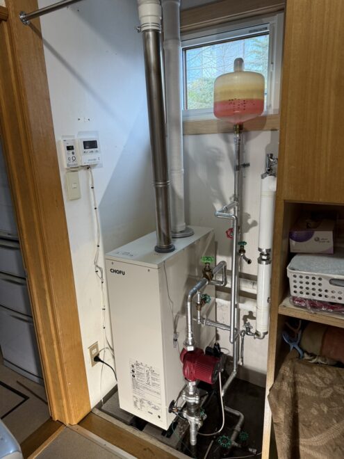 長府製の暖房エコフィールから、同じく長府製の暖房ボイラへお取替えさせていただきました。
